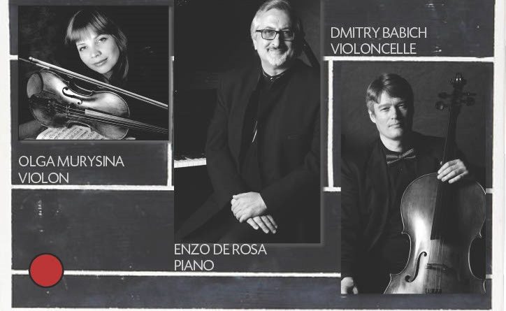 Pianist Enzo De Rosa, violinist Olga Murysina, and cellist Dmitry Babich will take you on a musical journey through classic cinema accompanied by a projection of memorable clips.